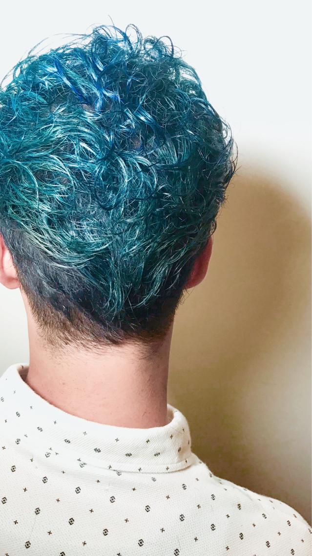 ブリーチ1回ベースの髪に ターコイズブルーのカラーバターをオン